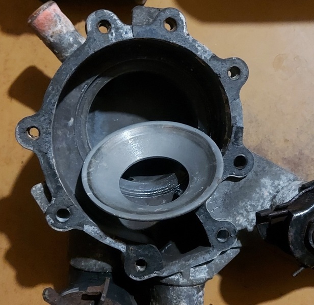 Добрый день уважаемые соклубники! Очень нужна Ваша помощь! Суть вопроса попробую изложить кратко. Сегодня первый день, как начало жарить солнышко. Кот начал сильно греться. Температура начала подниматься достаточно быстро. Чтобы доехать до дома, врубил печку до отказу, и температура быстро пришла в норму. Пока доехал, чуть не сварился заживо. Недолго думая разобрал котика, снял термос и помпу. После демонтажа выяснились несколько вещей: 1. Какой-то керамический кусок застрял в термостате. Фотки неведомой хрени ниже приложу. Вот так он был зажат в корпусе термостатом: 2. В корпусе помпы просто болтается металлическая вставка. Я предполагаю, что такого быть не должно. Собственно вопросы: 1. Что это за запчасть застряла в термосе? Собственно откуда эта штука там взялась? Какой урон ее остатки могут нанести плавая в системе охлаждения, она ведь когда-то была круглая? И возможно ли как то их оттуда извлечь? 2. Есть предположение что это седло карпуса термостата. По диаметру оно прямо подходит. Кто-нибудь в курсе, есть ли в корпусе термостата подобные керамические кольца? 3. Железка в помпе (вставка крыльчатки, или хз как ее обозвать), она ведь должна быть закреплена в корпусе помпы намертво? Получается нужно искать новый корпус помпы? Буду очень признателен за любой совет, или разъяснение по этим вопросам. Спасибо заранее!
